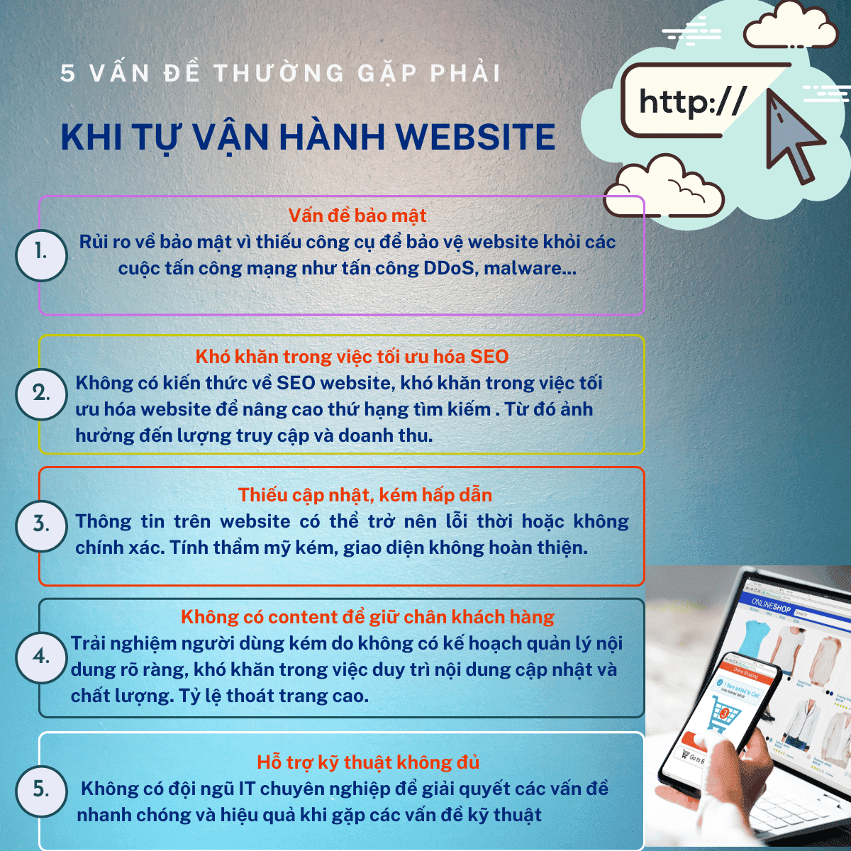 Khi doanh nghiệp tự chăm sóc website mà không có sự hỗ trợ từ dịch vụ chăm sóc chuyên nghiệp, họ có thể gặp phải một số khó khăn đáng kể. Dưới đây là những vấn đề phổ biến và thách thức mà các doanh nghiệp thường đối mặt: