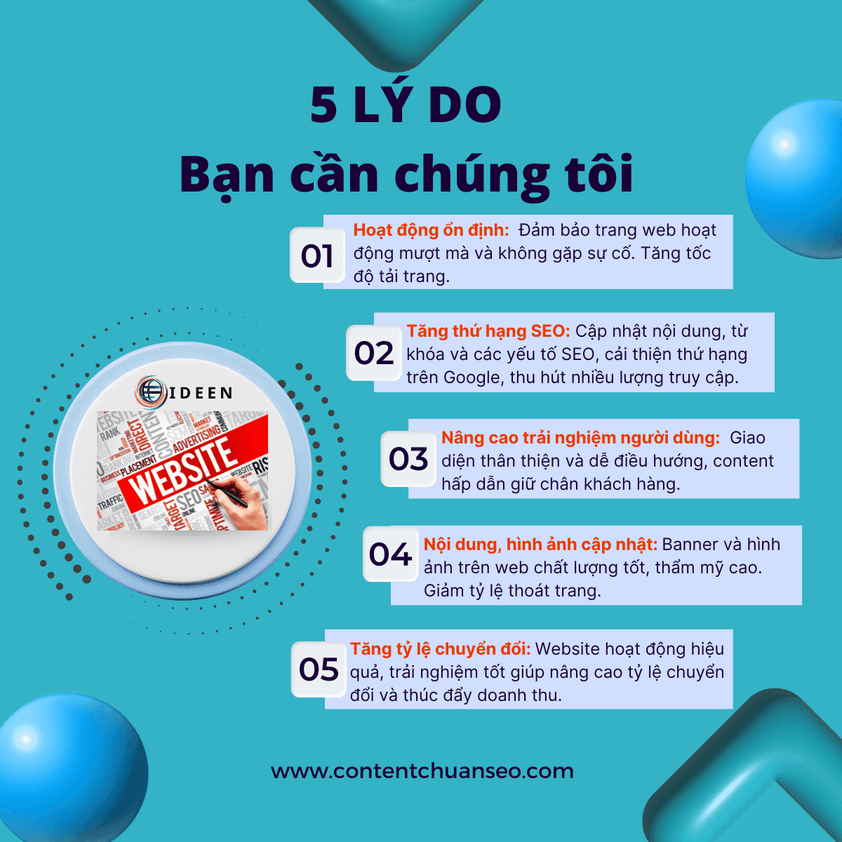 Hãy để IDeen Media trở thành đối tác đáng tin cậy trong việc chăm sóc website của bạn, mang lại sự phát triển bền vững và hiệu quả lâu dài.
